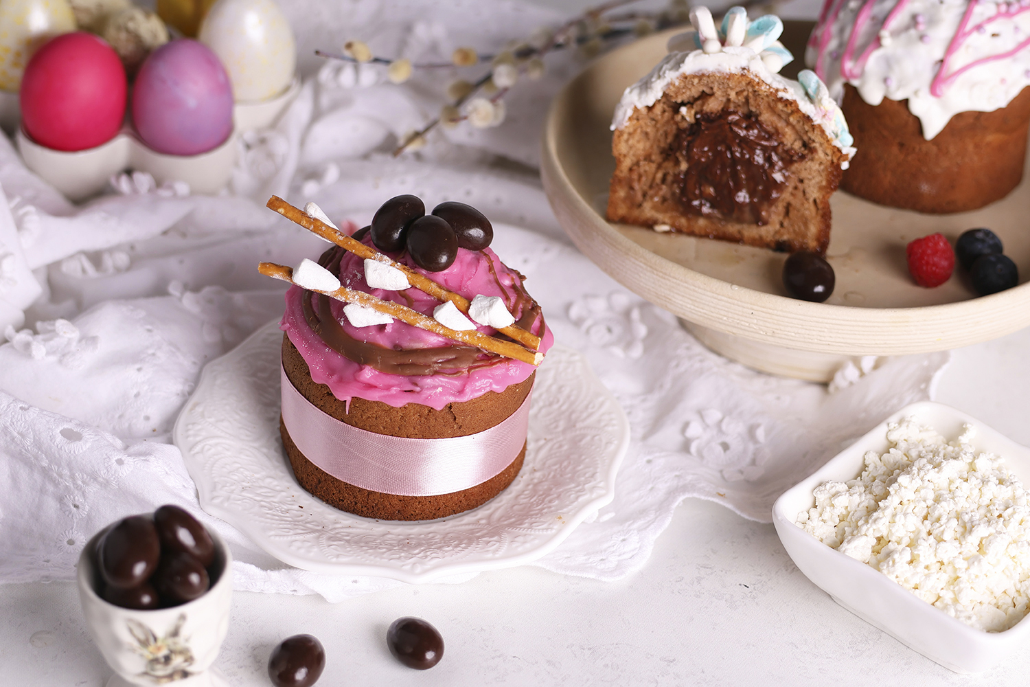 Во-первых, многослойность. Согласитесь, особенно красиво смотрится пасха, в которой сочетаются два цвета — благодаря добавлению фруктовых или шоколадных компонентов.