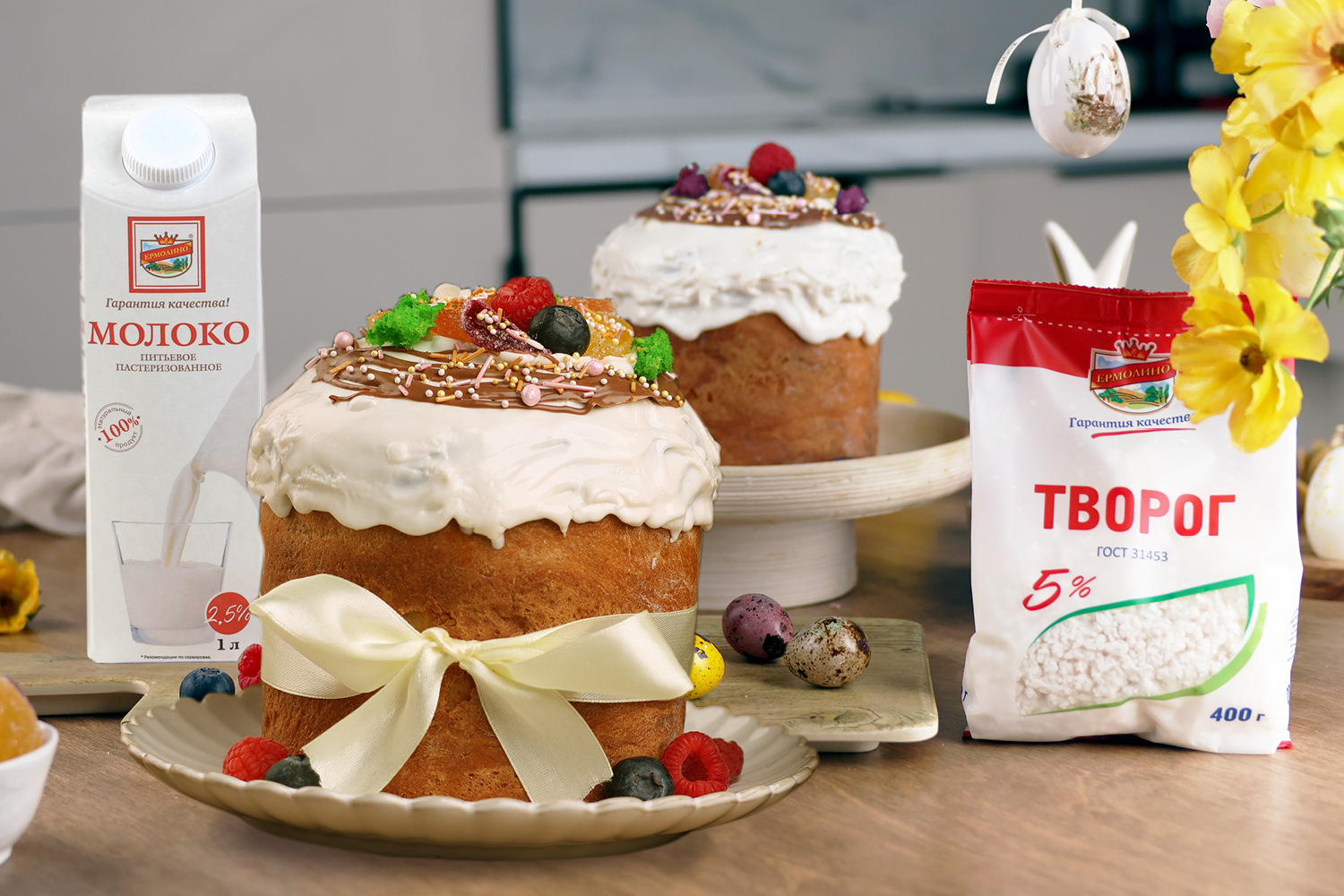 И нам приятно видеть в магазинах «ЕРМОЛИНО» весенний ажиотаж возле молочной витрины. Ведь именно натуральный состав — это то, за что ценят покупатели наше фирменное масло, молоко и творог. А это гарантия успеха пасхального стола.