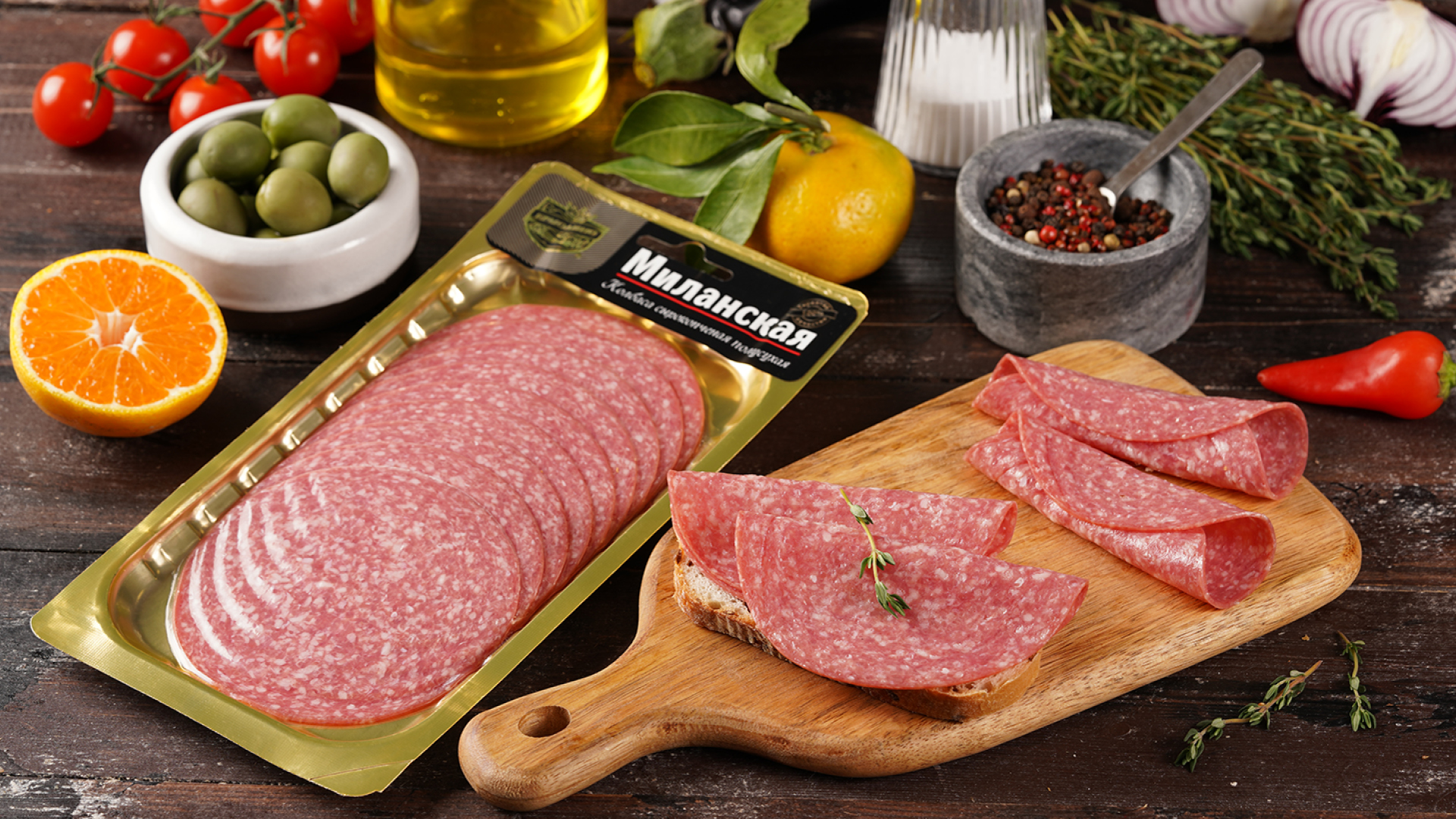 Ветчина и нарезка сырокопченых колбас также создадут особую ауру праздника.