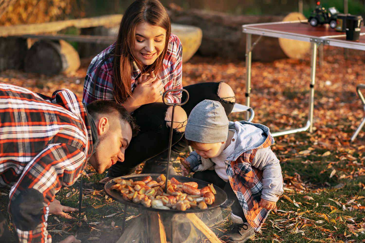 Пиццы, пироги и блинчики с начинкой органично впишутся в ваш осенний день на природе. Вы можете приготовить их дома (с «ЕРМОЛИНО» это очень просто), завернуть в фольгу и положить в термопакет (в магазинах «ЕРМОЛИНО» такие есть). А можете аккуратно разогреть на решетке над углями. Не забудьте про термос с горячим чаем — оцените, насколько ярким будет аромат напитка на свежем осеннем воздухе.