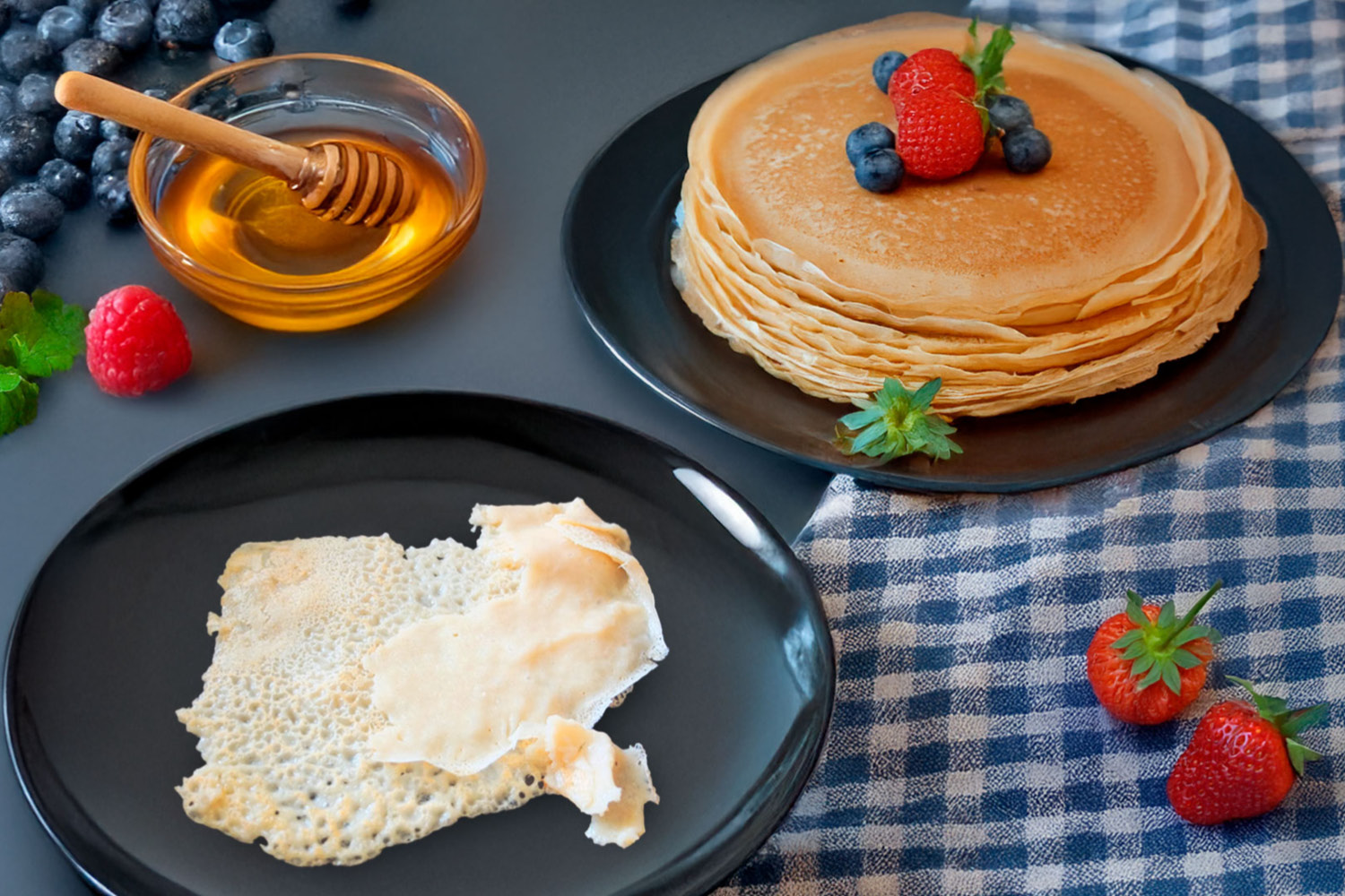 Чтобы ваши блины были нежными и не рвались, добавьте в тесто немного крахмала из пропорции: на 2 стакана муки 2 столовые ложки картофельного крахмала.