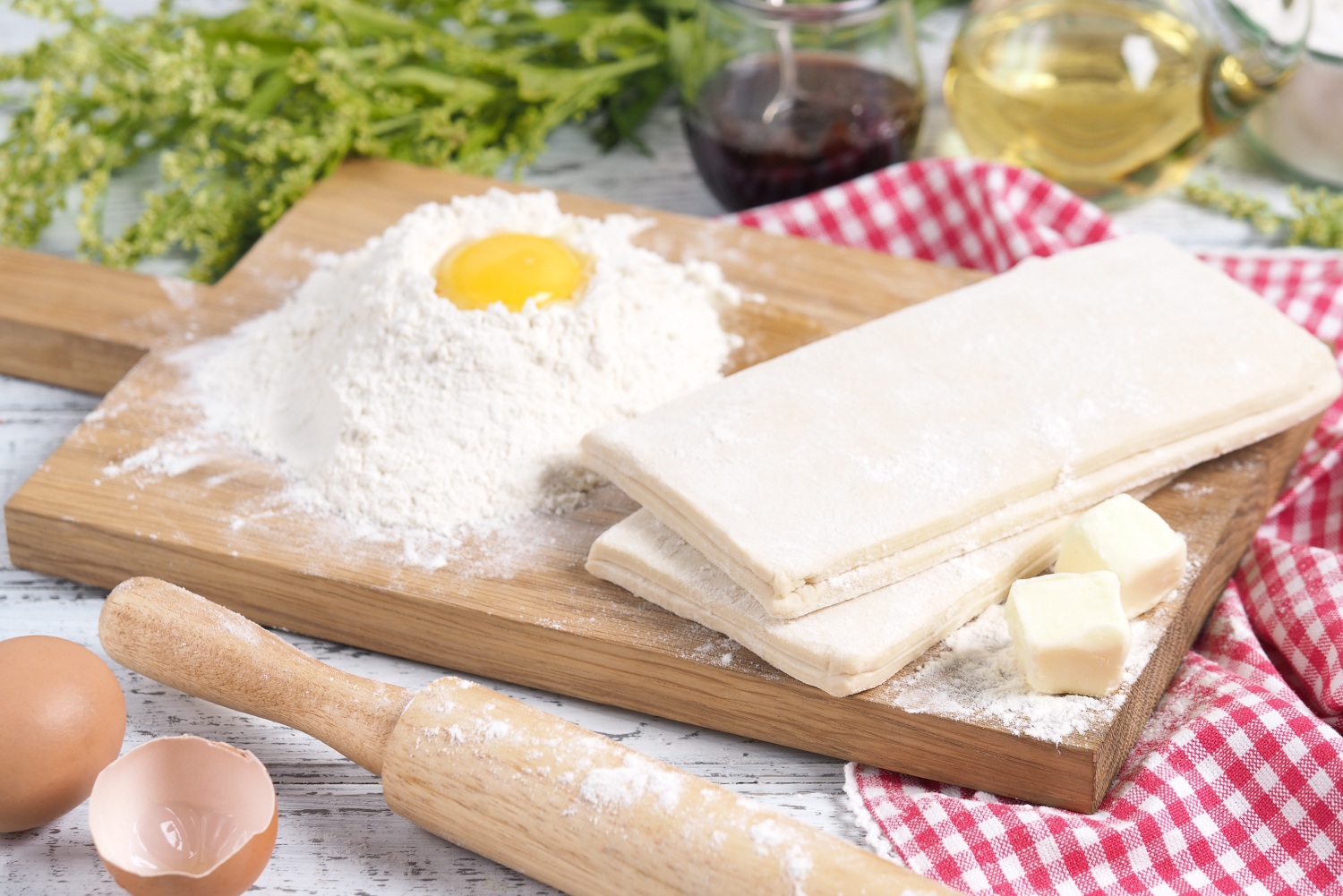 Слоеное тесто бывает дрожжевым и бездрожжевым. Поднятие слоев при выпечке дрожжевого теста происходит за счет комплексной работы дрожжей и масла: дрожжи разрыхляют тесто, а масло не дает ему слипнуться. В бездрожжевом тесте работает только масло, и для него очень важно, чтобы количество слоев было больше, а сами слои тоньше.