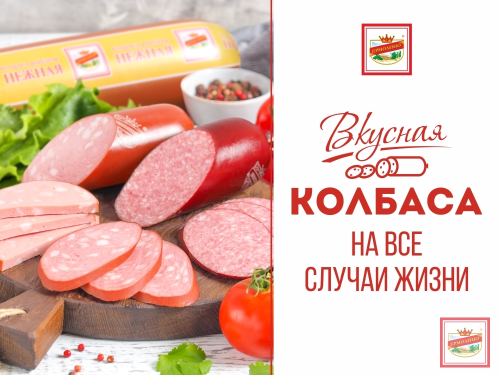 Колбаса и колбасные изделия ТМ "ЕРМОЛИНО" выручают в любых ситуациях, подходят как для быстрого «рабочего» перекуса, так и для праздничных застолий!