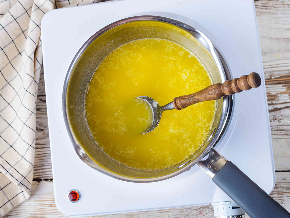В топлёном масле сохраняется масса полезных свойств. Оно содержит витамины А, D, E, а также в нём нет лактозы, что очень актуально людям, страдающим её непереносимостью.