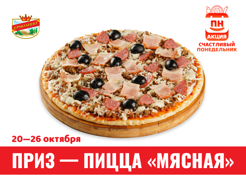 С 20 по 26 октября мы проводим шестой этап акции «Счастливый понедельник», и на этот раз мы разыгрываем пиццу «Мясную»!