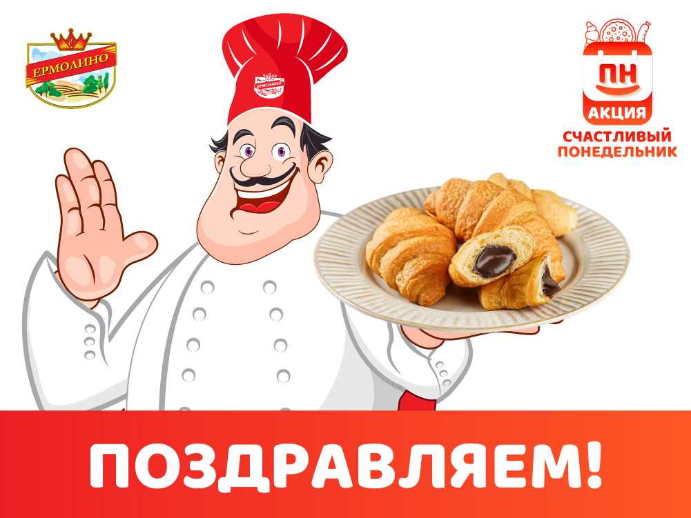 Стартовал финальный этап акции «Счастливый понедельник»! На кону — 10 килограммов воздушных круассанов с шоколадной начинкой для 10 победителей!