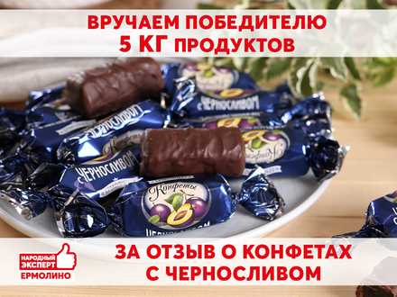 На этой неделе победу одержала Марина Пялкина из Тамбовской области за отзыв о конфетах с черносливом от ТМ «ЕРМОЛИНО».
