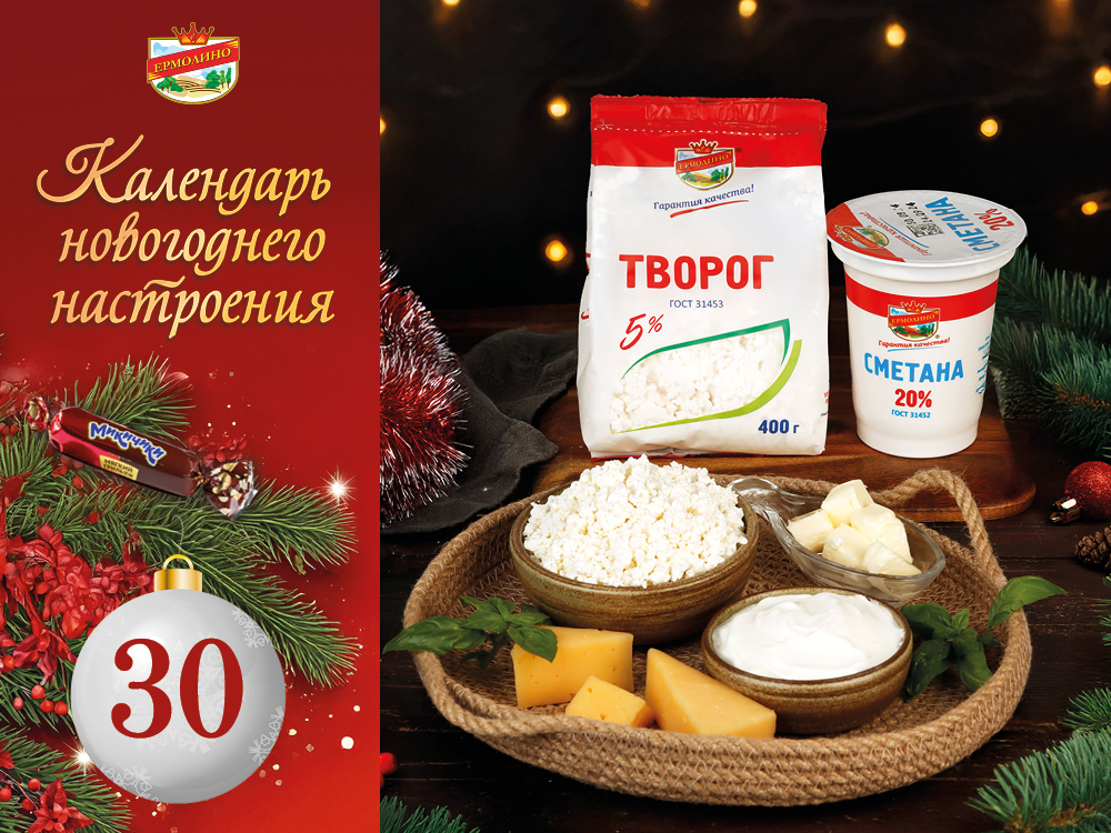Молочные продукты ТМ «ЕРМОЛИНО» — это база для повседневного рациона и незаменимые ингредиенты для новогоднего стола. Они подходят как для простых завтраков, так и для приготовления салатов, закусок, горячих блюд и праздничной выпечки.