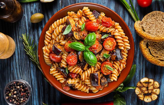 8. Соединить готовые макароны с овощной смесью на сковороде. Прогреть вместе в течение 2–3 минут на медленном огне, чтобы макароны пропитались ароматами.