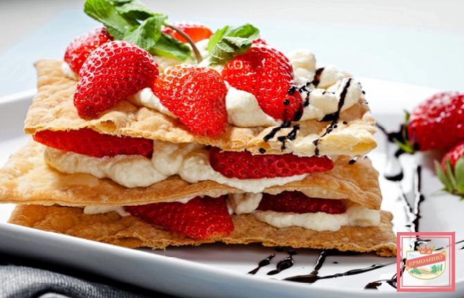 Мильфей — невероятно вкусный десерт из слоеного теста с нежным кремом. В отличие от классического «Наполеона», слои этого пирожного не должны пропитываться кремом. Предлагаем приготовить его из бездрожжевого слоеного теста ТМ «ЕРМОЛИНО» с ванильным заварным кремом и свежей клубникой.