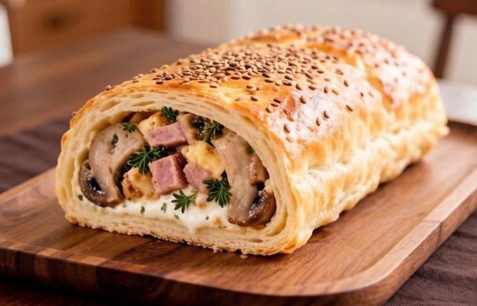 Рулет с грибами, сыром и карбонадом
