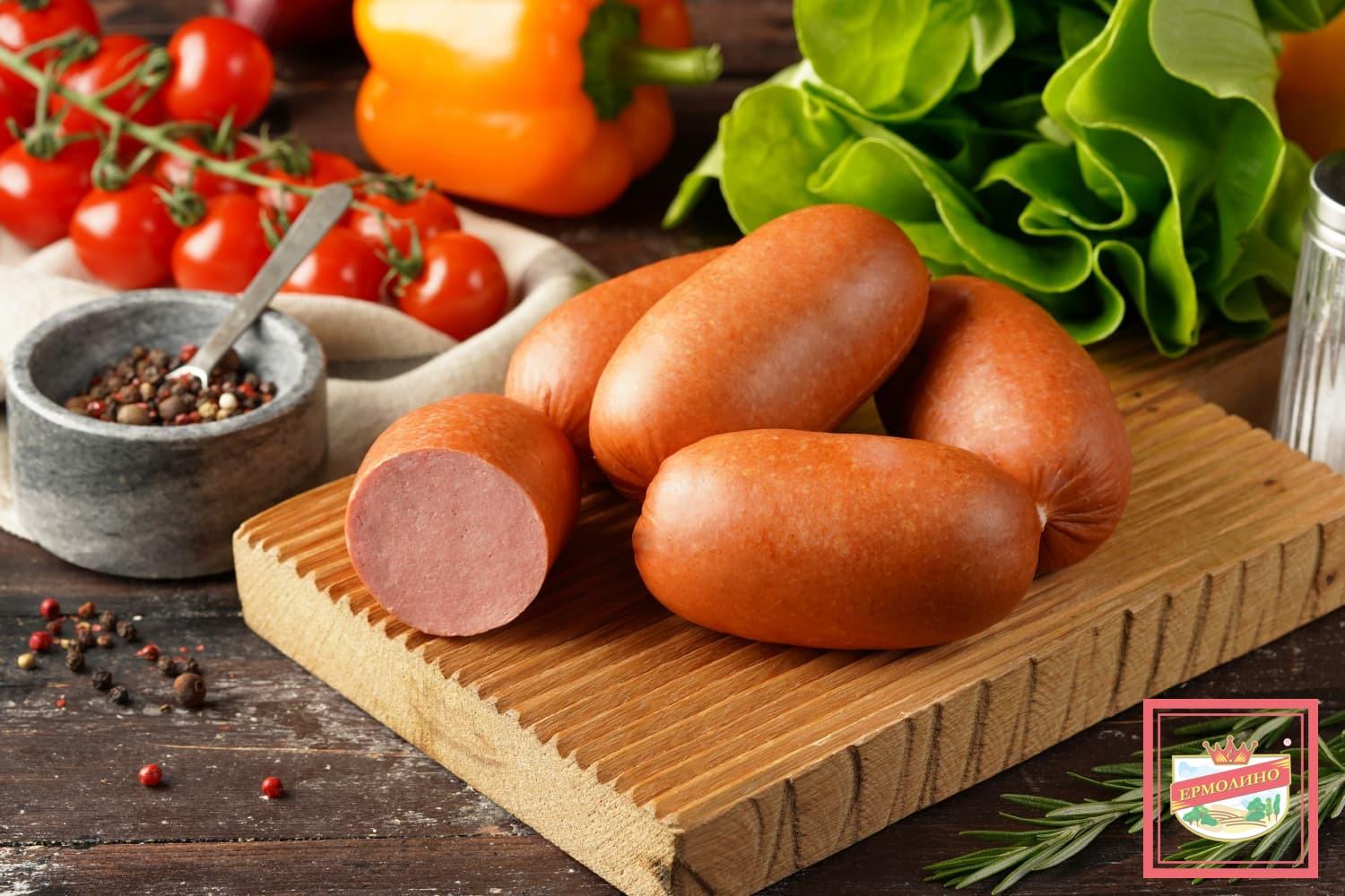 Сочные и нежные сардельки в натуральной оболочке. Изготовлены из мяса птицы и говядины с добавлением пряных специй. Вкусные, сытные и очень аппетитные.
