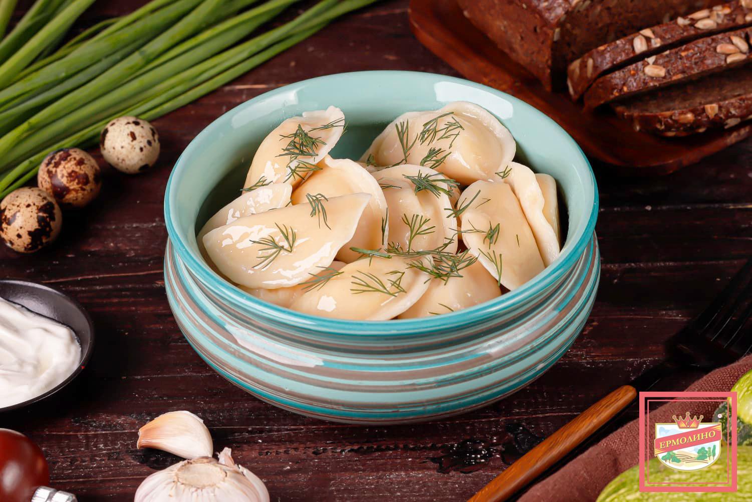 Традиционные вареники с картофельной начинкой — в меру соленые, сбалансированные по вкусу. Идеально сочетаются с маслом, сметаной и соусами ТМ «ЕРМОЛИНО».